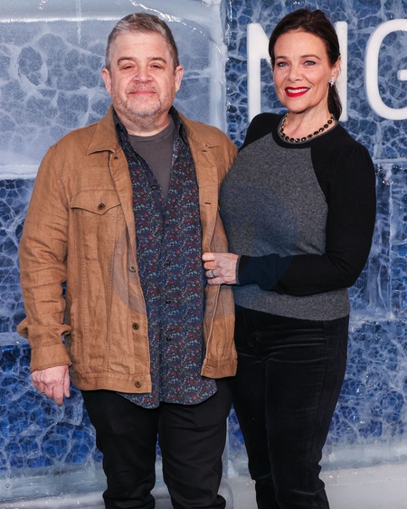 HOLLYWOOD, LOS ANGELES, CALIFORNIA, USA - JANUARY 09: Patton Oswalt and Meredith Salenger arrive at the Los Angeles Premiere Of HBO's 'True Detective: Night Country' Season 4 held at the Paramount Theatre at Paramount Pictures Studios on January 9, 2024 in Hollywood, Los Angeles, California, United States., Credit:Xavier Collin / Avalon