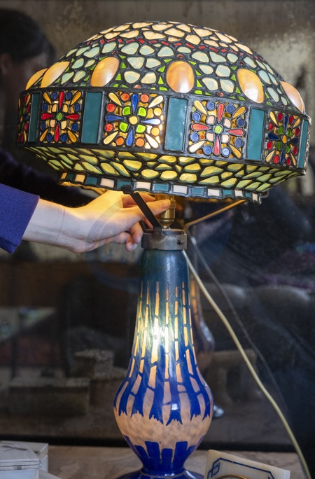 London, UK, 10th January, 2024. Bellmans preparing sell the Collection of the late Anthony Gardner, the notable London-based jewellery dealer and collector, who specialised in the Art Nouveau and Arts & Crafts periods. The auction will take place on 16th April 2024 in Sussex. Image: Tiffany style lamp., Credit:MALCOLM PARK / Avalon