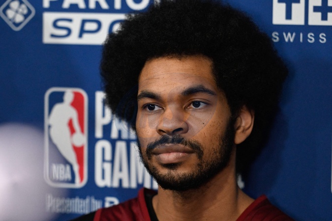 Jarrett Allen ( 31 - Cleveland Cavaliers ) during the Cleveland Cavaliers press conference at Palais des Sports Marcel Cerdan on January 10, 2024 in Levallois, France. © Federico Pestellini / Panoramic / Bestimage