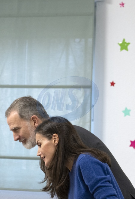 Le roi Felipe VI et la reine Letizia d'Espagne en visite dans l'école primaire "Gumersindo Azcarate" à Léon en Espagne. Le 10 janvier 2024 King Felipe VI and Queen Letizia visit 'Gumersindo Azcarate' Primary School winner of the 'Princess of Girona School of the Year 2022 Award' . Leon - January 10, 2024