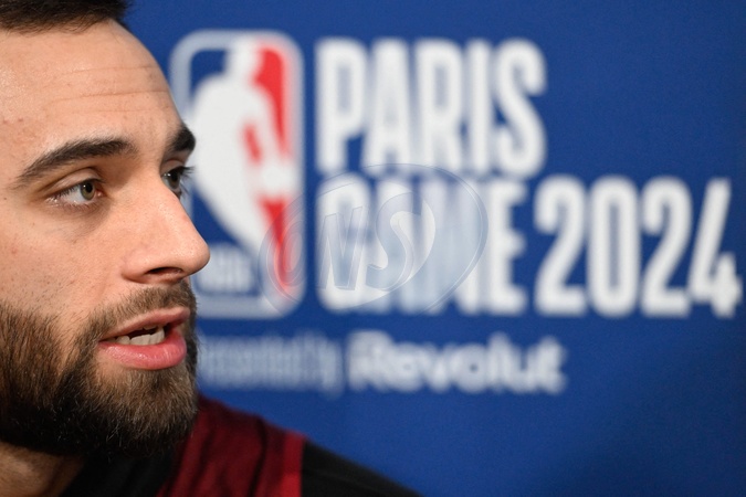 Max Strus ( 1 - Cleveland Cavaliers ) during the Cleveland Cavaliers press conference at Palais des Sports Marcel Cerdan on January 10, 2024 in Levallois, France. © Federico Pestellini / Panoramic / Bestimage