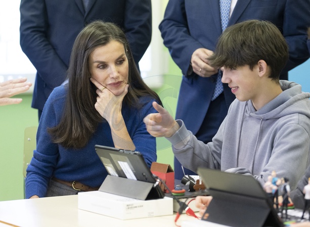 Le roi Felipe VI et la reine Letizia d'Espagne en visite dans l'école primaire "Gumersindo Azcarate" à Léon en Espagne. Le 10 janvier 2024 King Felipe VI and Queen Letizia visit 'Gumersindo Azcarate' Primary School winner of the 'Princess of Girona School of the Year 2022 Award' . Leon - January 10, 2024
