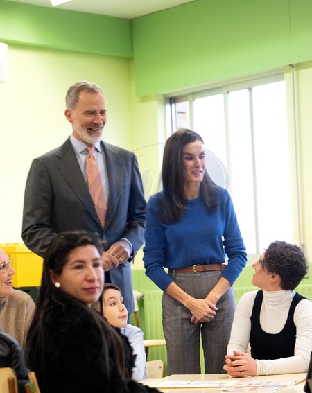 Le roi Felipe VI et la reine Letizia d'Espagne en visite dans l'école primaire "Gumersindo Azcarate" à Léon en Espagne. Le 10 janvier 2024 King Felipe VI and Queen Letizia visit 'Gumersindo Azcarate' Primary School winner of the 'Princess of Girona School of the Year 2022 Award' . Leon - January 10, 2024