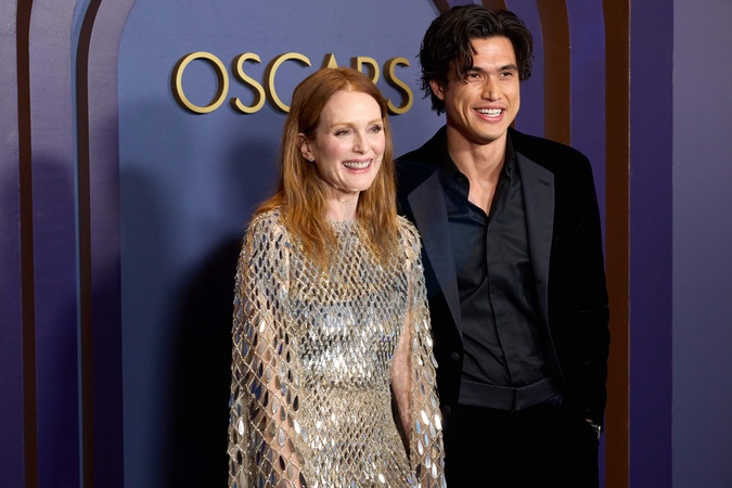 Julianne Moore and Charles Melton arrive at the 14th Governors Awards in the Ray Dolby Ballroom at Ovation Hollywood on Tuesday, January 9, 2024., Credit:A.M.P.A.S. / Avalon