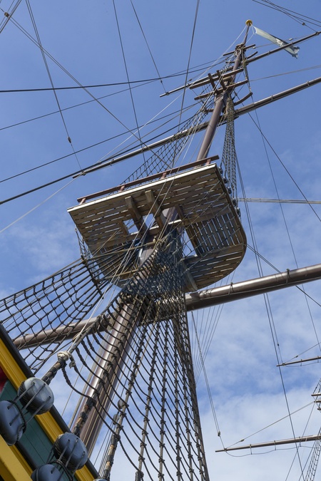 Masts and rigging, East Indiaman, replica ship, National Maritime Museum, Amsterdam, Netherlands