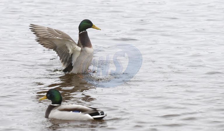 KYIV, UKRAINE - JANUARY 06, 2024 - Ducks swim in the Dnipro River on Dnipro embankment, Kyiv, capital of Ukraine., Credit:Ruslan Kanuka / Avalon
