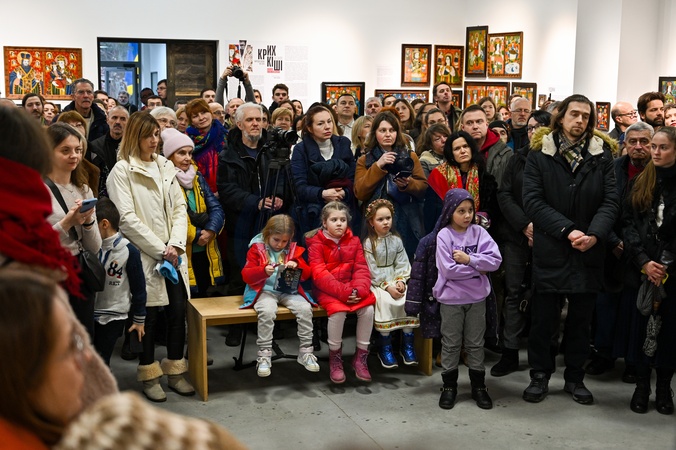LVIV, UKRAINE - JANUARY 06, 2024 - Visistors are seen during the opening of the exhibition of folk icons on glass from the collection of Ostap Lozynskyi "More Fragile than Glass" at the Klymentii Sheptytskyi Museum of Folk Architecture and Rural Life, Lviv, western Ukraine., Credit:Anastasiia Smolienko / Avalon