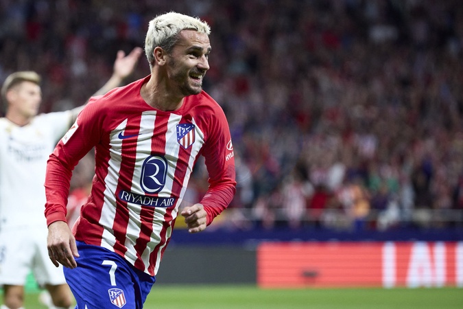 Info - Antoine Griezmann, nouveau meilleur buteur de tous les temps de l'Atlético de Madrid - Antoine Griezmann of Atletico de Madrid celebrates his goal during the LaLiga EA Sports match between Atletico de Madrid and Real Madrid Cf at Civitas Metropolitano Stadium, in Madrid, Spain, on September 23, 2023.