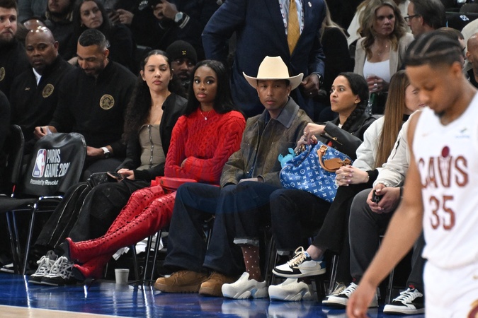 Célébrités assistent au match de basket de NBA entre les Cavs de Cleveland contre les Brooklyn Nets (111-102) à l'Accor Arena à Paris le 11 janvier 2024. Coco Jones and Pharrell Williamsduring the NBA Paris Game 2024 between Brookly Nets vs Cleveland Cavaliers at Accor Arena on January 11, 2024 in Paris, France. ( Photo by federico pestellini / panoramic ) -