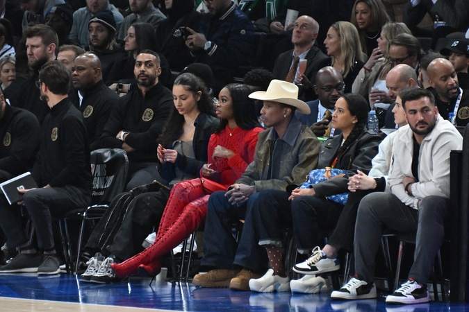 Célébrités assistent au match de basket de NBA entre les Cavs de Cleveland contre les Brooklyn Nets (111-102) à l'Accor Arena à Paris le 11 janvier 2024. Coco Jones and Pharrell Williams attend the NBA Paris Game 2024 between Brookly Nets vs Cleveland Cavaliers at Accor Arena on January 11, 2024 in Paris, France. ( Photo by federico pestellini / panoramic ) -