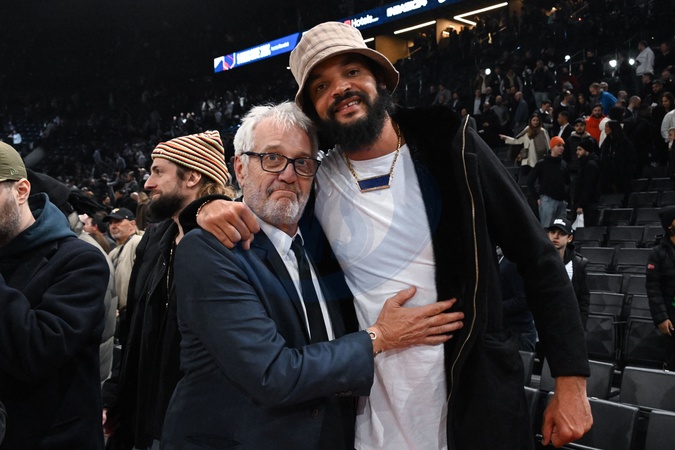 Célébrités assistent au match de basket de NBA entre les Cavs de Cleveland contre les Brooklyn Nets (111-102) à l'Accor Arena à Paris le 11 janvier 2024. Jacques Monclar and Joakim Noah following the NBA Paris Game 2024 between Brookly Nets vs Cleveland Cavaliers at Accor Arena on January 11, 2024 in Paris, France. ( Photo by federico pestellini / panoramic ) -