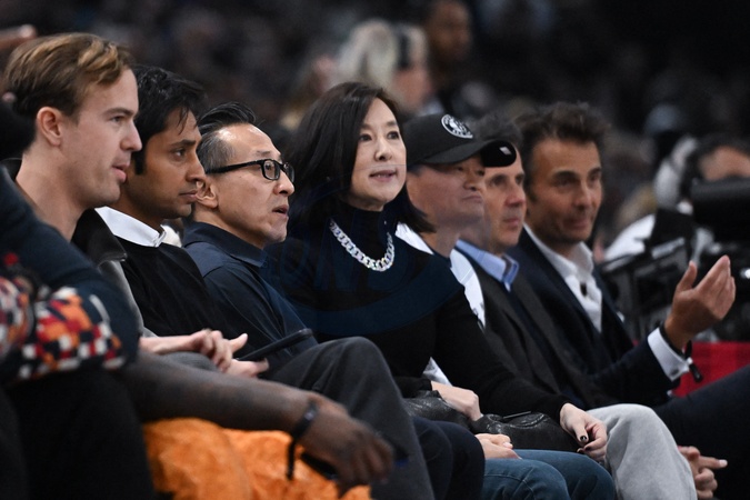 Célébrités assistent au match de basket de NBA entre les Cavs de Cleveland contre les Brooklyn Nets (111-102) à l'Accor Arena à Paris le 11 janvier 2024. Jack Ma - Clara Wu Tsai and Joe Tsai during the NBA Paris Game 2024 between Brookly Nets vs Cleveland Cavaliers at Accor Arena on January 11, 2024 in Paris, France. ( Photo by federico pestellini / panoramic ) -