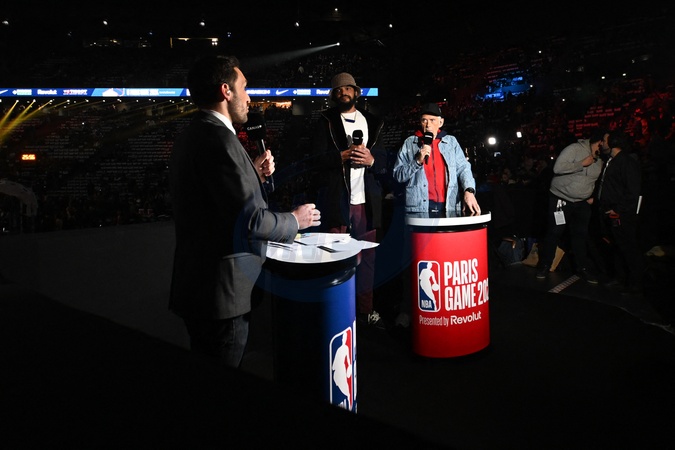 Gwiazdy biorą udział w meczu koszykówki NBA pomiędzy Cleveland Cavs a Brooklyn Nets (111-102) w Accor Arena w Paryżu