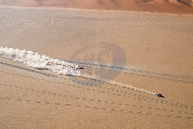 204 SAINZ Carlos (spa), CRUZ Lucas (spa), Team Audi Sport, Audi RS Q E-Tron E2, FIA Ultimate, FIA W2RC, 203 LOEB Sébastien (fra), LURQUIN Fabian (bel), Bahrain Raid Xtreme, Prodrive Hunter, FIA Ultimate, action during the Stage 6 «48 Hours Chrono» of the Dakar 2024 from January 11 to 12, 2024 around Subaytah, Saudi Arabia. © Eric Vargiolu/DPPI/Bestimage