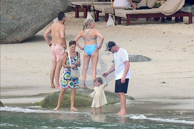 Exclusif - Prix spécial - No Web - Jason Statham et Rosie Huntington-Whiteley passent un moment en famille à la plage de l'hôtel Amanpuri à Phuket, Thaïlande