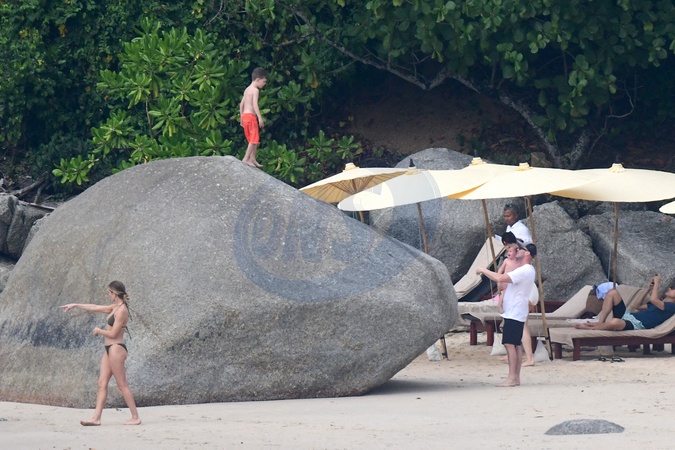 Exclusif - Prix spécial - No Web - Jason Statham et Rosie Huntington-Whiteley passent un moment en famille à la plage de l'hôtel Amanpuri à Phuket, Thaïlande