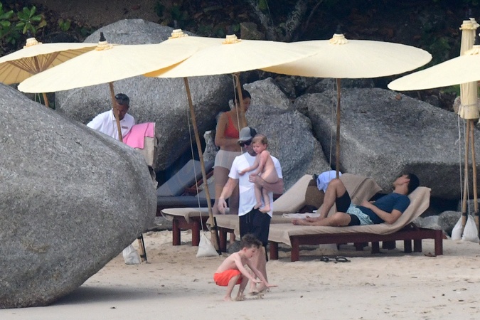 Exclusif - Prix spécial - No Web - Jason Statham et Rosie Huntington-Whiteley passent un moment en famille à la plage de l'hôtel Amanpuri à Phuket, Thaïlande