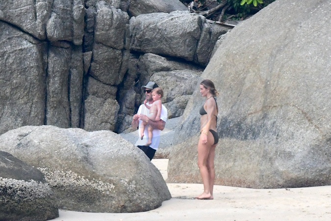 Exclusif - Prix spécial - No Web - Jason Statham et Rosie Huntington-Whiteley passent un moment en famille à la plage de l'hôtel Amanpuri à Phuket, Thaïlande