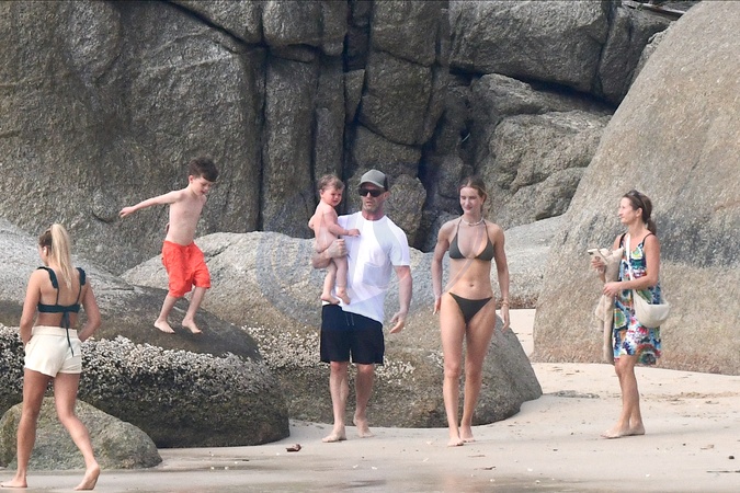 Exclusif - Prix spécial - No Web - Jason Statham et Rosie Huntington-Whiteley passent un moment en famille à la plage de l'hôtel Amanpuri à Phuket, Thaïlande
