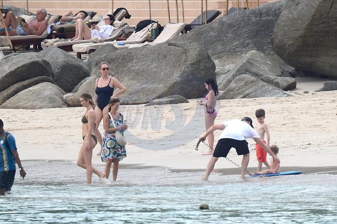 Exclusif - Prix spécial - No Web - Jason Statham et Rosie Huntington-Whiteley passent un moment en famille à la plage de l'hôtel Amanpuri à Phuket, Thaïlande