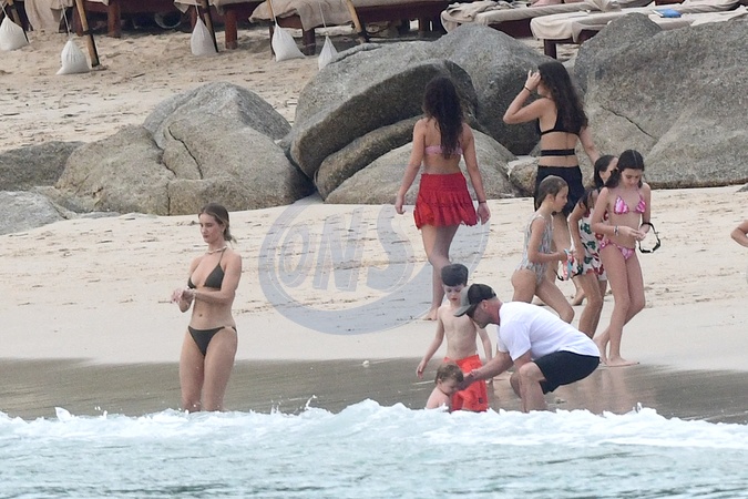 Exclusif - Prix spécial - No Web - Jason Statham et Rosie Huntington-Whiteley passent un moment en famille à la plage de l'hôtel Amanpuri à Phuket, Thaïlande le 28 décembre 2023. Ils profitent de ses moments précieux avec leurs enfant Jack et Isabella. Au programme : Balades, baignades et jeux. OBLIGATOIRE : FLOUTER LE VISAGE DES ENFANTS ET NUDITÉ AVANT PUBLICATION Exclusive - No web For Germany call for price Rosie Huntington-Whiteley takes a jet-ski ride with her son Jack during their holiday in Phuket on 28 December 2023. — Please pixelate children face and nudity prior to publication —
