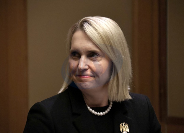 KYIV, UKRAINE - JANUARY 12, 2024 - Ambassador Extraordinary and Plenipotentiary of the United States to Ukraine Bridget Brink attends a press briefing of US Special Representative for Economic Recovery Penny Pritzker, Kyiv, capital of Ukraine, Credit:Yevhen Kotenko / Avalon