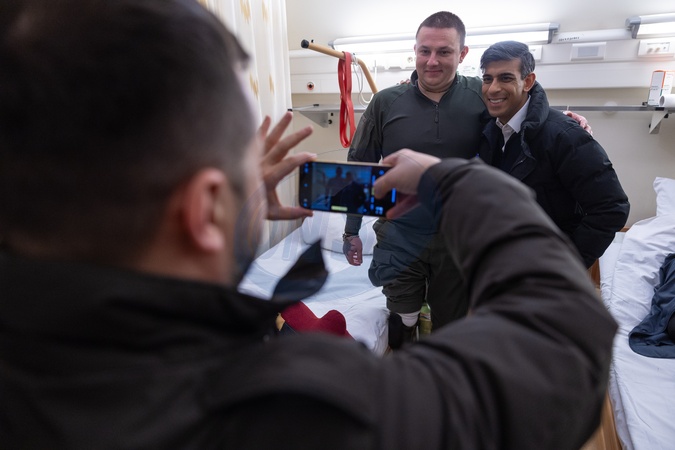 Premier Wielkiej Brytanii Rishi Sunak z wizytą w szpitalu wojskowym na Ukrainie