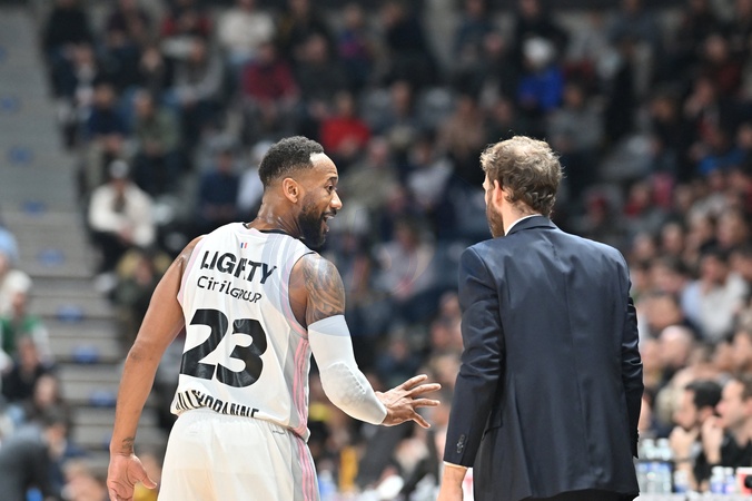 David Lighty et Pierric Poupet (asvel) - BASKETBALL : LDLC ASVEL vs Alba Berlin (63-88) - Match d' Euroligue à Villeurbane le 12 janvier 2024. © Frederic Chambert / Panoramic / Bestimage BASKETBALL : LDLC ASVEL vs Alba Berlin - Euroleague - 01/12/2024