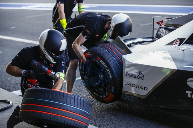 09 EVANS Mitch (nzl), Jaguar TCS Racing, Jaguar I-Type 6, mecaniciens mechanics hankook, tyre, tire during the 2024 Hankook Mexico City ePrix, 1st meeting of the 2023-24 ABB FIA Formula E World Championship, on the Autodromo Hermanos Rodriguez from January 11 to 13, in Mexico City, Mexico -