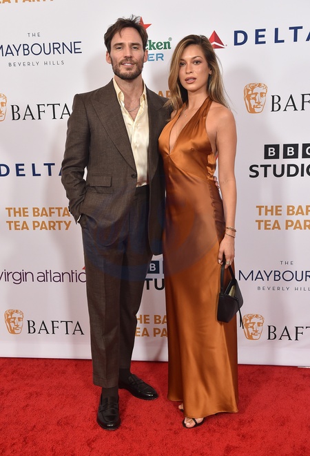 Sam Claflin and Cassie Amato arriving at the 2024 BAFTA Tea Party held at Maybourne Beverly Hills on January 13, 2024 in Beverly Hills, Ca.© Lisa OConnor/AFF-USA.com