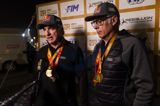 Journée de repos lors du Dakar 2024 en Arabie Saoudite - 204 SAINZ Carlos (spa), CRUZ Lucas (spa), Team Audi Sport, Audi RS Q E-Tron E2, FIA Ultimate, FIA W2RC, portrait during the rest day of the Dakar 2024 on January 13, 2024 in Riyadh, Saudi Arabia -