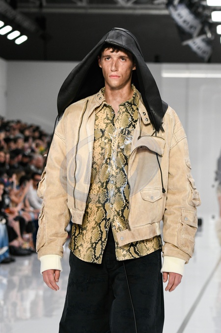 DSquared2 Model On Catwalk, Men, Milan Fashion Week 2024 Man Ready To Wear For Fall Winter, Defile, Fashion Show Runway Collection, Pret A Porter, Modelwear, Modeschau, Man, Laufsteg Hebet Winter Autumn Italycatwalk fashion outlook beauty runway menMILMFW24, Credit:www.fashionpps.com / Avalon