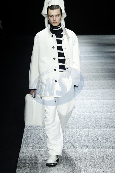Défilé Emporio Armani lors de la Fashion Week de Milan - Homme Automne/Hiver 2024-25 le 13 janvier 2024. Emporio Armani show during Milan Fashion Week - Men's Fall/Winter 2024-25 on January 13, 2024.