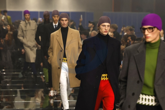 Défilé Prada "Collection Prêt-à-Porter Automne/Hiver 2024" lors de la Fashion Week de Milan (MLFW), le 14 janvier 2024. Prada Fashion Show "Ready-to-Wear Fall/Winter 2024" at Milan Fashion Week, January 14th, 2024.
