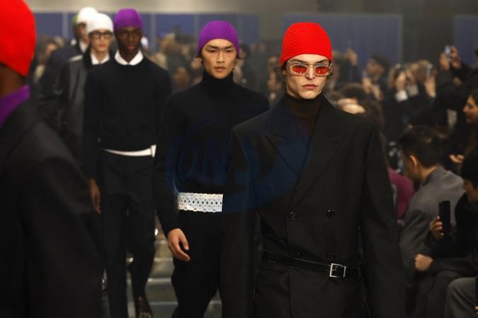 Défilé Prada "Collection Prêt-à-Porter Automne/Hiver 2024" lors de la Fashion Week de Milan (MLFW), le 14 janvier 2024. Prada Fashion Show "Ready-to-Wear Fall/Winter 2024" at Milan Fashion Week, January 14th, 2024.