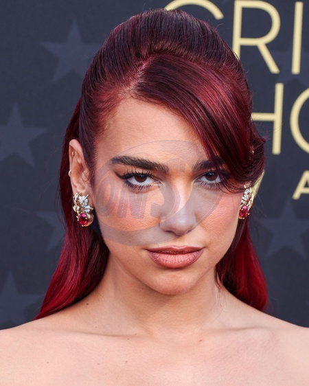 SANTA MONICA, LOS ANGELES, CALIFORNIA, USA - JANUARY 14: Dua Lipa wearing a custom Prada dress, Prada shoes and bag, and Tiffany and Co. jewelry arrives at the 29th Annual Critics' Choice Awards held at The Barker Hangar on January 14, 2024 in Santa Monica, Los Angeles, California, United States., Credit:Xavier Collin / Avalon