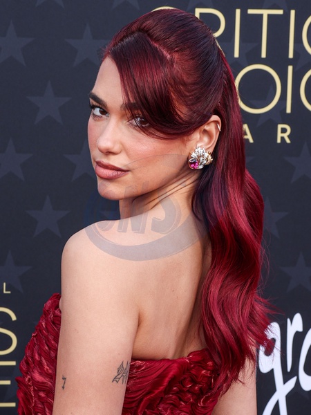 SANTA MONICA, LOS ANGELES, CALIFORNIA, USA - JANUARY 14: Dua Lipa wearing a custom Prada dress, Prada shoes and bag, and Tiffany and Co. jewelry arrives at the 29th Annual Critics' Choice Awards held at The Barker Hangar on January 14, 2024 in Santa Monica, Los Angeles, California, United States., Credit:Xavier Collin / Avalon