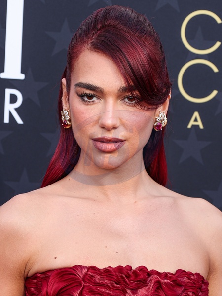 SANTA MONICA, LOS ANGELES, CALIFORNIA, USA - JANUARY 14: Dua Lipa wearing a custom Prada dress, Prada shoes and bag, and Tiffany and Co. jewelry arrives at the 29th Annual Critics' Choice Awards held at The Barker Hangar on January 14, 2024 in Santa Monica, Los Angeles, California, United States., Credit:Xavier Collin / Avalon