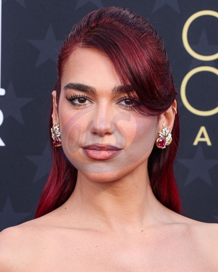 SANTA MONICA, LOS ANGELES, CALIFORNIA, USA - JANUARY 14: Dua Lipa wearing a custom Prada dress, Prada shoes and bag, and Tiffany and Co. jewelry arrives at the 29th Annual Critics' Choice Awards held at The Barker Hangar on January 14, 2024 in Santa Monica, Los Angeles, California, United States., Credit:Xavier Collin / Avalon
