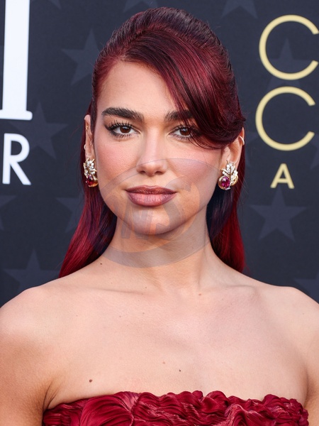SANTA MONICA, LOS ANGELES, CALIFORNIA, USA - JANUARY 14: Dua Lipa wearing a custom Prada dress, Prada shoes and bag, and Tiffany and Co. jewelry arrives at the 29th Annual Critics' Choice Awards held at The Barker Hangar on January 14, 2024 in Santa Monica, Los Angeles, California, United States., Credit:Xavier Collin / Avalon