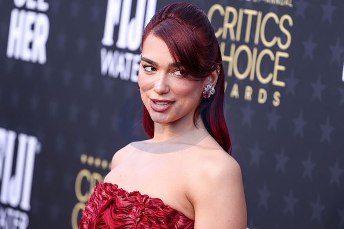 SANTA MONICA, LOS ANGELES, CALIFORNIA, USA - JANUARY 14: Dua Lipa wearing a custom Prada dress, Prada shoes and bag, and Tiffany and Co. jewelry arrives at the 29th Annual Critics' Choice Awards held at The Barker Hangar on January 14, 2024 in Santa Monica, Los Angeles, California, United States., Credit:Xavier Collin / Avalon