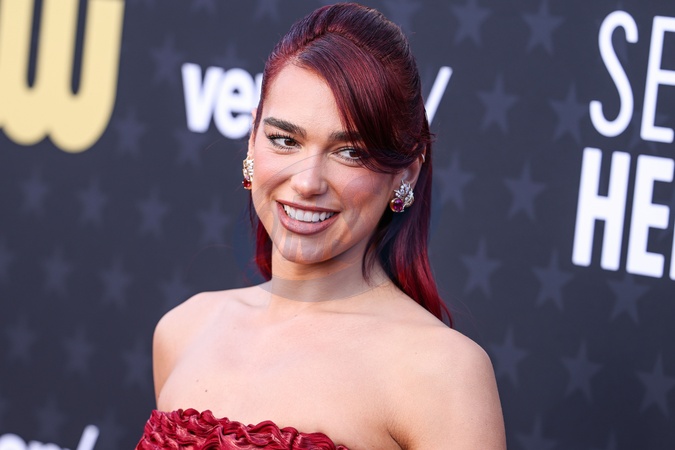 SANTA MONICA, LOS ANGELES, CALIFORNIA, USA - JANUARY 14: Dua Lipa wearing a custom Prada dress, Prada shoes and bag, and Tiffany and Co. jewelry arrives at the 29th Annual Critics' Choice Awards held at The Barker Hangar on January 14, 2024 in Santa Monica, Los Angeles, California, United States., Credit:Xavier Collin / Avalon