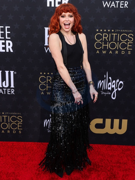 SANTA MONICA, LOS ANGELES, CALIFORNIA, USA - JANUARY 14: Natasha Lyonne wearing a Dolce and Gabbana dress and David Webb jewelry arrives at the 29th Annual Critics' Choice Awards held at The Barker Hangar on January 14, 2024 in Santa Monica, Los Angeles, California, United States., Credit:Xavier Collin / Avalon