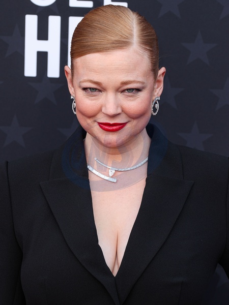 SANTA MONICA, LOS ANGELES, CALIFORNIA, USA - JANUARY 14: Sarah Snook wearing a custom Cong Tri dress, Manolo Blahnik shoes, a Tyler Ellis bag, and Bucherer jewelry arrives at the 29th Annual Critics' Choice Awards held at The Barker Hangar on January 14, 2024 in Santa Monica, Los Angeles, California, United States., Credit:Xavier Collin / Avalon