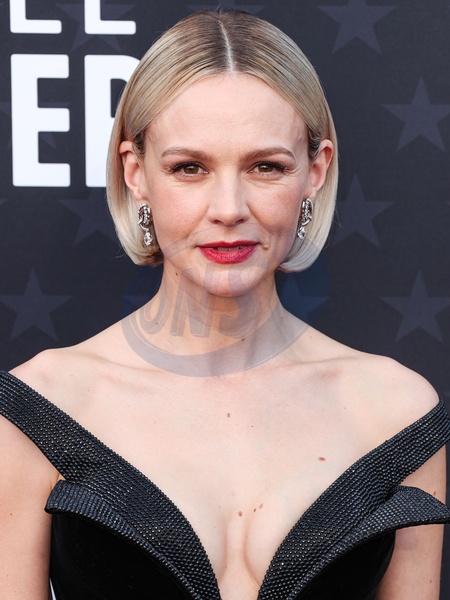 SANTA MONICA, LOS ANGELES, CALIFORNIA, USA - JANUARY 14: Carey Mulligan wearing Armani Prive and Tiffany and Co. jewelry arrives at the 29th Annual Critics' Choice Awards held at The Barker Hangar on January 14, 2024 in Santa Monica, Los Angeles, California, United States., Credit:Xavier Collin / Avalon