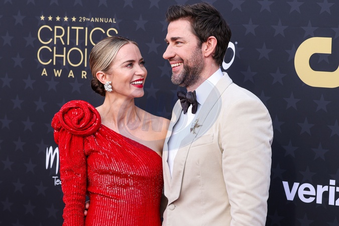 SANTA MONICA, LOS ANGELES, CALIFORNIA, USA - JANUARY 14: Emily Blunt and husband John Krasinski arrive at the 29th Annual Critics' Choice Awards held at The Barker Hangar on January 14, 2024 in Santa Monica, Los Angeles, California, United States., Credit:Xavier Collin / Avalon