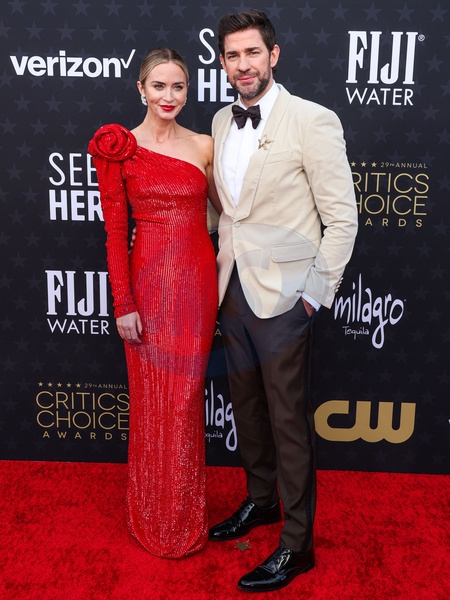 SANTA MONICA, LOS ANGELES, CALIFORNIA, USA - JANUARY 14: Emily Blunt and husband John Krasinski arrive at the 29th Annual Critics' Choice Awards held at The Barker Hangar on January 14, 2024 in Santa Monica, Los Angeles, California, United States., Credit:Xavier Collin / Avalon