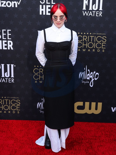 SANTA MONICA, LOS ANGELES, CALIFORNIA, USA - JANUARY 14: Billie Eilish wearing Thom Browne with Oliver Peoples glasses arrives at the 29th Annual Critics' Choice Awards held at The Barker Hangar on January 14, 2024 in Santa Monica, Los Angeles, California, United States., Credit:Xavier Collin / Avalon