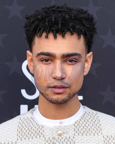 SANTA MONICA, LOS ANGELES, CALIFORNIA, USA - JANUARY 14: Archie Madekwe wearing Louis Vuitton and a Cartier watch arrives at the 29th Annual Critics' Choice Awards held at The Barker Hangar on January 14, 2024 in Santa Monica, Los Angeles, California, United States., Credit:Xavier Collin / Avalon