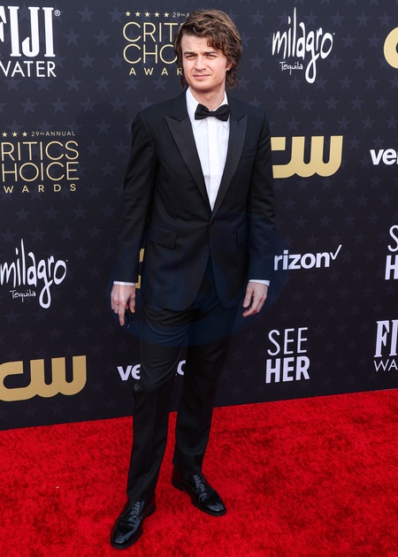 SANTA MONICA, LOS ANGELES, CALIFORNIA, USA - JANUARY 14: Joe Keery wearing Louis Vuitton arrives at the 29th Annual Critics' Choice Awards held at The Barker Hangar on January 14, 2024 in Santa Monica, Los Angeles, California, United States., Credit:Xavier Collin / Avalon